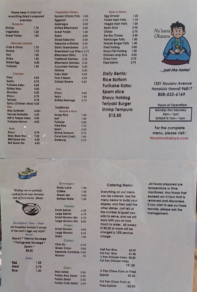 Discover the delightful culinary offerings of Nu'uanu Okazuya, a charming deli located at 1351 Nuuanu Ave, Honolulu. This cozy spot specializes in Japanese breakfast and brunch, serving up a unique fusion of flavors. The menu features a wide variety of delectable dishes, from flavorful shoyu chicken and crispy chicken katsu to vegetarian options like gobo and kabocha. The alá carte format allows guests to indulge in personalized selections, enhancing the dining experience.